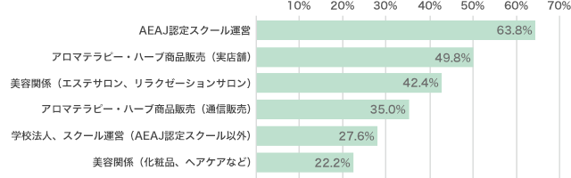 アロマテラピー・ハーブの商品販売や、アロマテラピー・ハーブ・美容・健康関連のスクール運営が主な業種です。近年では、化粧品業界からの入会が増えています。