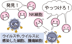 リンパ球の一つ。ウイルスやウイルスに感染した細胞、腫瘍細胞などを破壊し、無毒化する働きを持ちます。