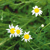 白い花が可憐なカモミールは、キク科のハーブで一年草のジャーマンカモミール、多年草のローマンカモミールなどの種類があり、ハーブティー、精油、エキスなど、さまざまな形で、植物療法として汎用されています。AEAJでは、カモミール・ローマン精油を使い、肌への美容効果を調べる実験を行いました。その結果、コラーゲンの産生促進作用が増加することが認められました。カモミール・ローマン精油には、肌本来の美しさを甦らせ、健康な肌を保つことに役立つ可能性が期待されています。