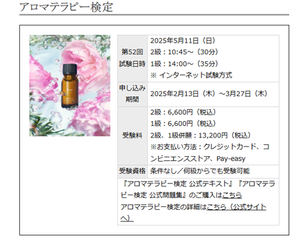 詳細はアロマテラピー検定事務局までお問い合わせください。