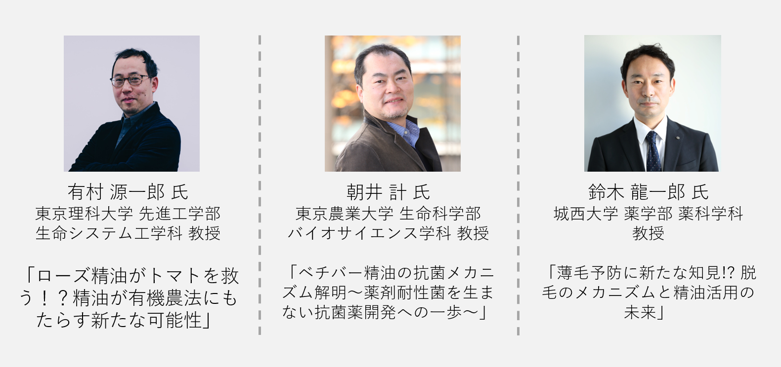 内容:可能性を秘めた“アロマ×美容”の世界を、異なる分野の専門家3名にさまざまな視点から語っていただきます。トークセッションの後には交流会も開催いたします。