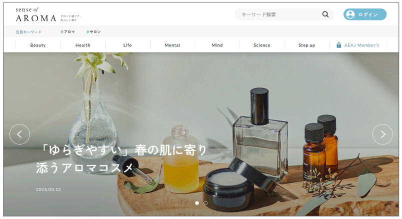 そんなお声にお応えするため、AEAJではアロマの総合情報サイト『sense of AROMA』を3月27日(木)にオープンいたしました。