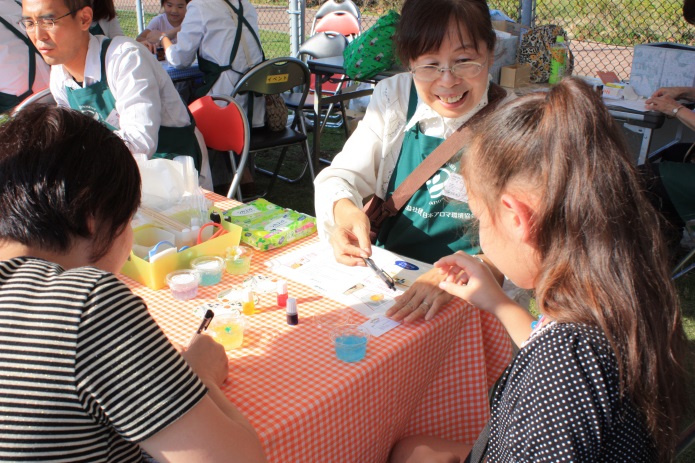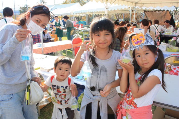 柏の葉公園で行われる最大級イベント「オータムフェスタ」も今年で3 年連続の出展となりました。本イベントにつきましても、地元の会員の方々に中心となっていただき、イベントを実施いたしました。今年は20 名の会員の方々にご協力いただきましたが、昨年のスタッフ経験者が初めての方へクラフト作りのレクチャーの上手な方法や、参加者の誘導方法を説明したり、また自分たちで考えて工夫したりと、時間が経つにつれ、会員スタッフの方々の経験値と結束が高まっていくのが分かりました。連日多くの人で賑わい、休む暇もないくらい忙しかったですが、会員同士のチームワークで大成功となりました。