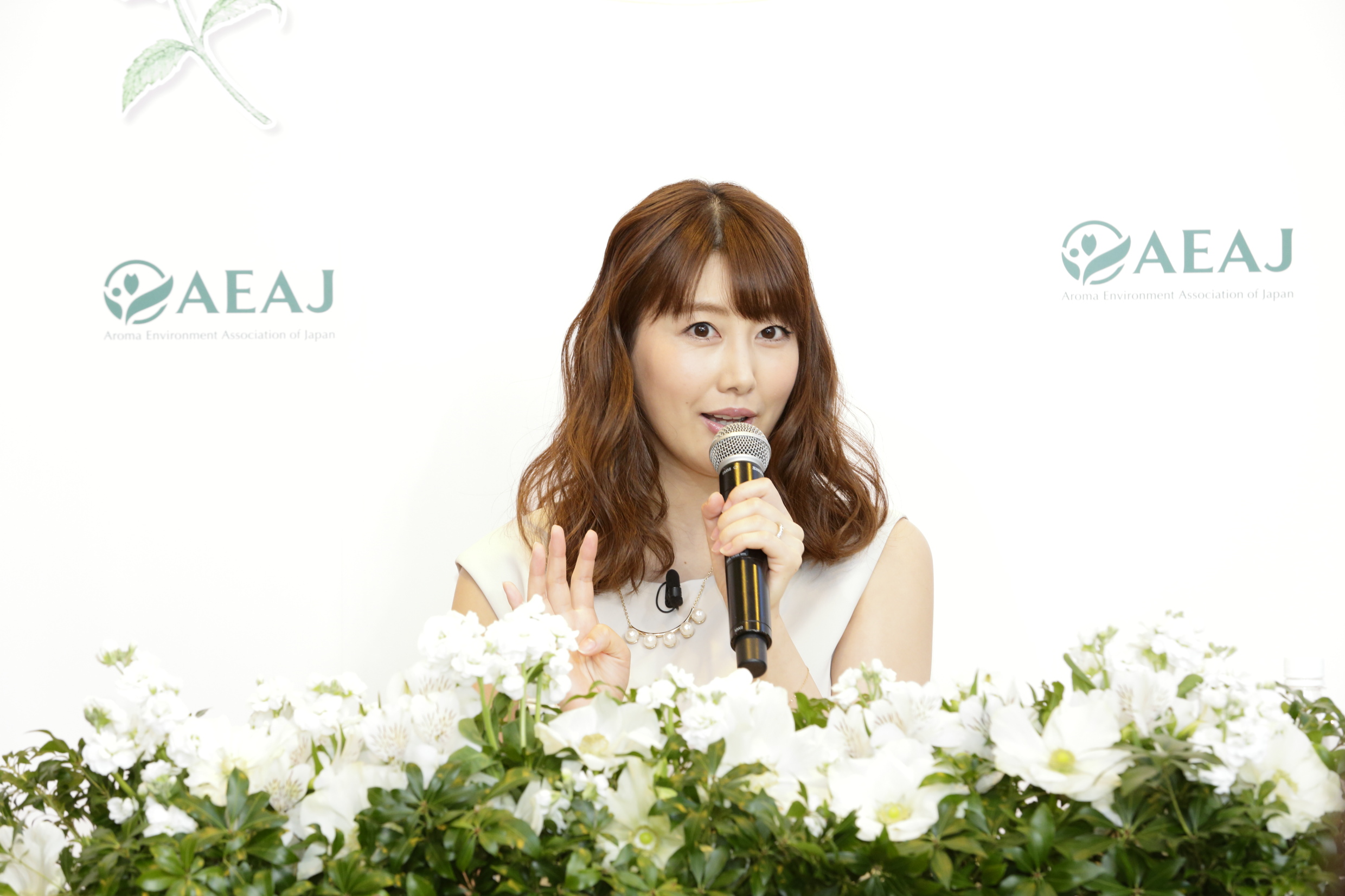 『アロマ女子大 オープンキャンパス』と題し、各界で活躍する7名の特別講師によるアロマ講座を実施しました。タレントの安めぐみさんによる「新米ママ学科」では、AEAJ認定アロマテラピーアドバイザーの資格をもつ安さんのアロマテラピーとの出合いから資格取得までのエピソードや、育児を楽しむ日々についてなどを講演。「子どもには母親のストレスが伝わってしまう。だから、母親がリラックスすることも、とても大切。子どもが寝静まってから、バスタイムにアロマでひとりの時間も楽しんでいる」と、忙しい生活の合間にリフレッシュとしてアロマテラピーを取り入れる方法についても紹介し、普段から持ち歩いているというアロマスプレーの作り方をレクチャー。講座の締めくくりとして、「女性ならではの不調・ストレスもあると思いますが、精油の作用に助けられながら健やかに笑顔の日々を過ごしましょう!」と受講者へメッセージを送りました。