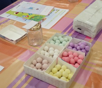 1回目は「パステルカラーでブレンド~香りのこびん作り」と題し、香りごとにパステル色で色分けされた石粉ねんどの香り玉を数個選び、参加者オリジナルの香りのこびんを作成。皆さん思い思いの香りができあがり、「香りを作るのが楽しかった」「いろいろな香りを知ることができて良かった」といった感想をいただきました。