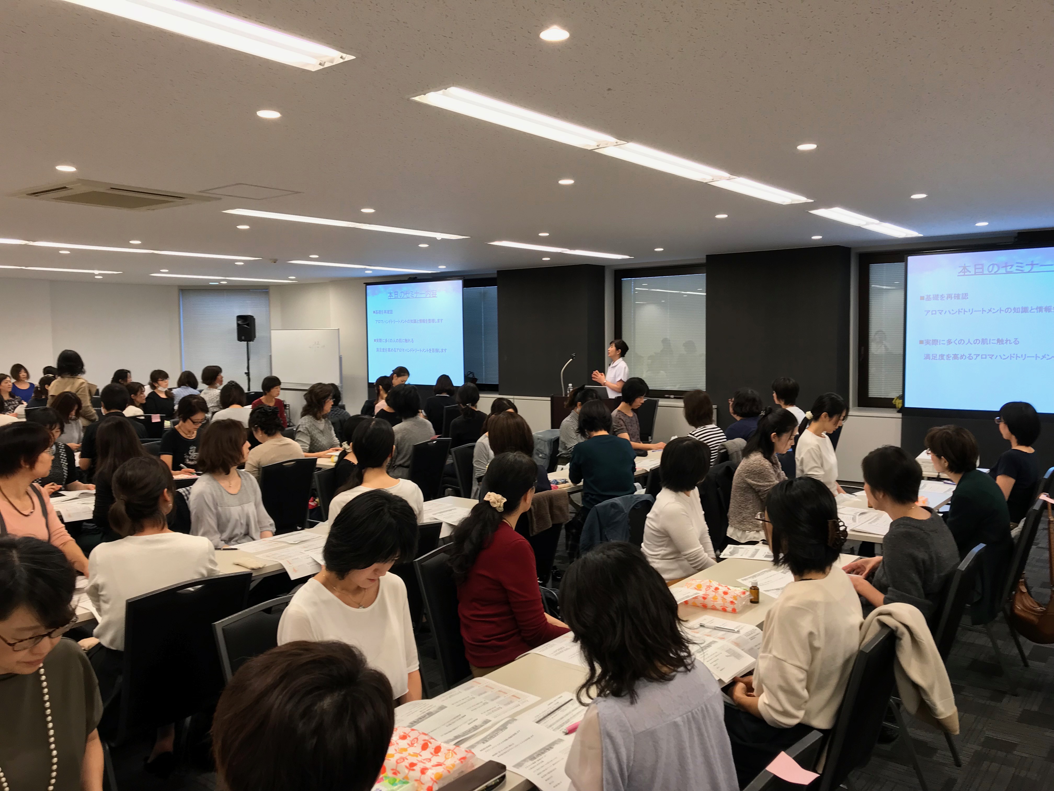 アロマハンドセラピスト資格取得者やアロマセラピスト資格取得者を対象に、実習をメインにしたセミナーを開催いたしました。アロマハンドトリートメントの実技を実践的に学びたい多くの方に参加をいただきました。