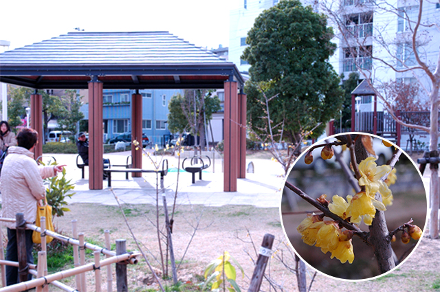 鮮やかな黄色の花をほころばせるロウバイ。公園を訪れる方の目を楽しませています