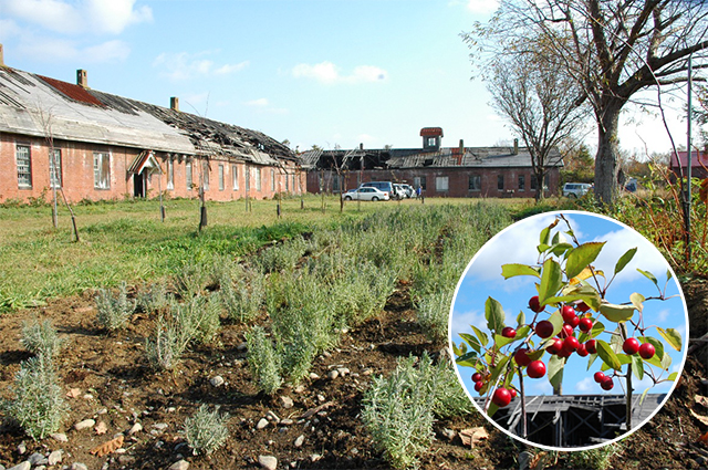 旧海軍大湊通信隊稚内分遣隊幕別送信所分庁舎跡地と見事に実ったリンゴ