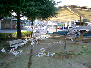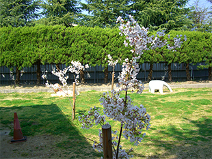 | こども広場に開花のソメイヨシノ (写真提供:3 点とも京都向日町競輪場) | |