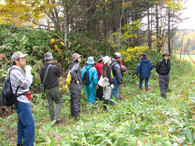 企画者の稚内市歴史・まち研究会は、フットパスマップを制作。その中の2つのコースに平成19 年度、環境大臣賞を受賞した「香りとさえずりの杜」、平成20 年度、におい・かおり環境協会賞を受賞した「香りゃんせ通り」が含まれているそうです。フットパスマップの制作に関して、同研究会の西間敏幸さんに詳しくお伺いすると、次のように語ってくださいました。「フットパスとは100 年ほど前、英国が発祥の地といわれ、スロースローで“歩く道”を意味するとのこと。稚内の道端の高山植物の説明を受けたり、ときには簡単なゲームをしながら、五感をフルに活かしていただければ健康回復にもつながります」さらに、「“稚内市観光マイスターの資格を取得して皆さんへの説明が楽しみ”、“笹刈作業の手伝いをしてほしい”、“いっしょに植樹したい”、“昔の稚内について語りたい”、“酒が飲みたい”、“嫁がほしい”(いないか?)など多種多様な夢をもって、全国からボランティア参加者を求めております」と西間さん。