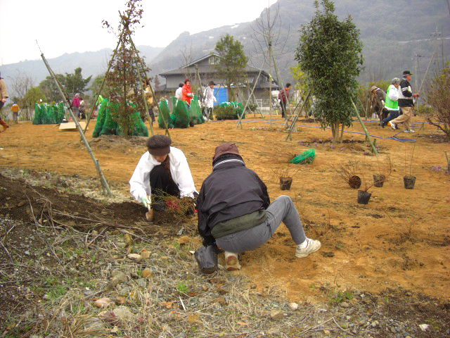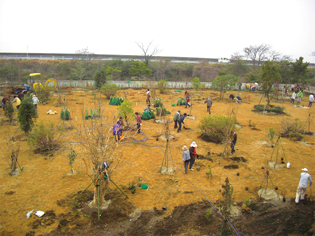 ボランティアの方たちによって、広大な公園内に約2000本の植樹が行われました