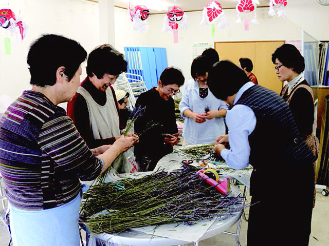 毎年、復興市ではラベンダーの花束やポプリをプレゼント。
