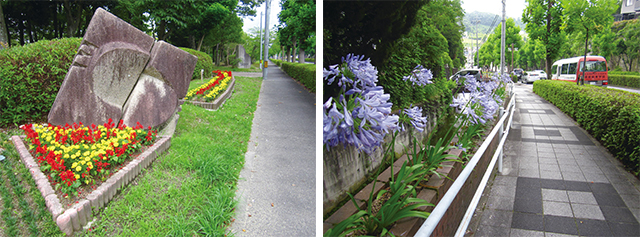 住民の手によって花苗の植え付けが行われた花壇は、鹿ノ台のランドマーク的な存在。