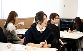 精油には、抗菌作用を持つものもあり、風邪が流行する季節には、室内に芳香すれば空気を清浄にする効果が期待できるのだそう。またホルモンバランスの影響による月経時のイライラや落ち込みに役立つアロマテラピーの活用法も学びました。誰もが経験したことのある悩みだからこそ、簡単に取り入れられるアロマテラピー活用法を皆さん真剣に学んでいました。